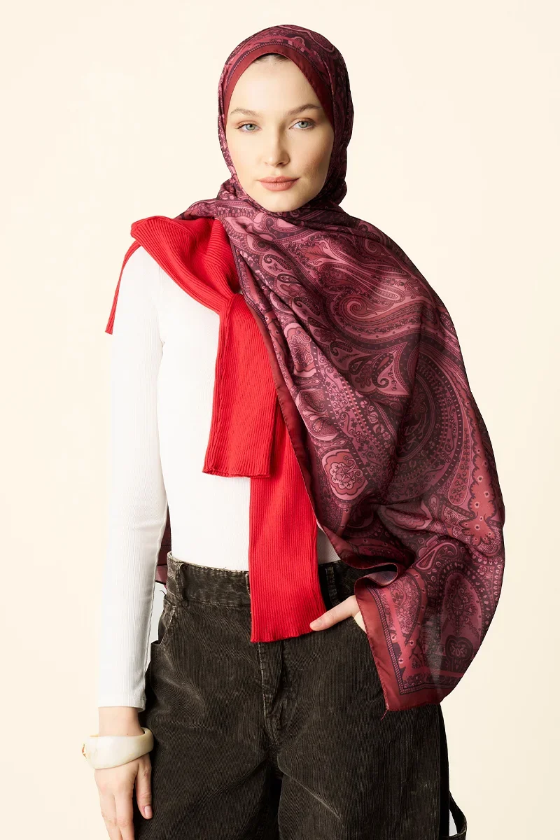 Clara Desenli Pamuk Dokulu Şal - Kırmızı