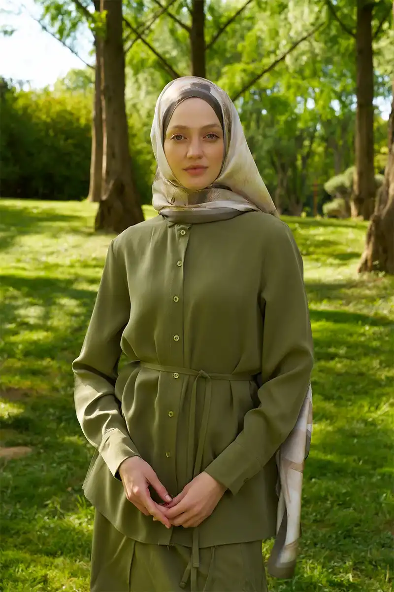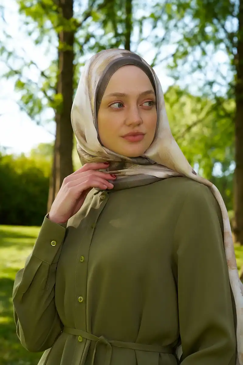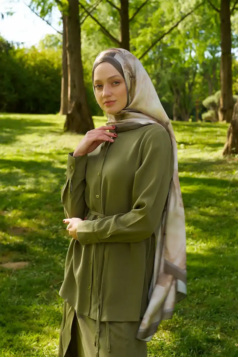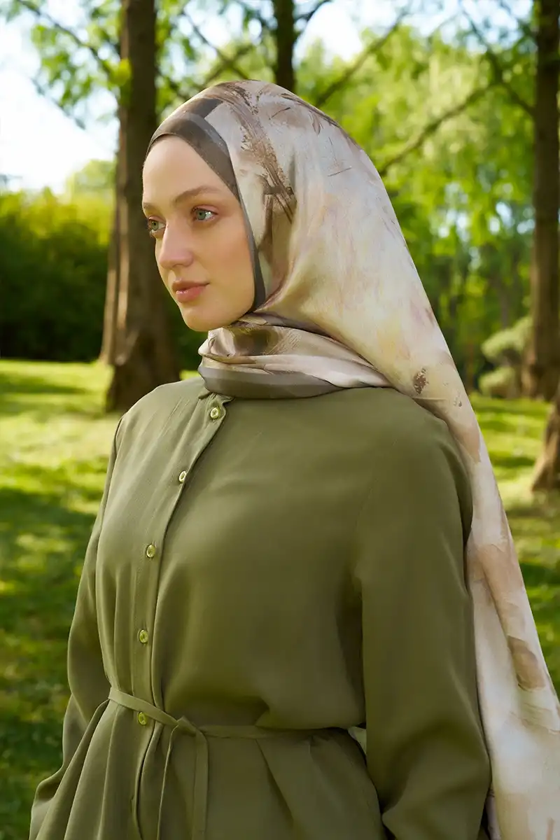 Crystal Flower Desen Şal - Haki