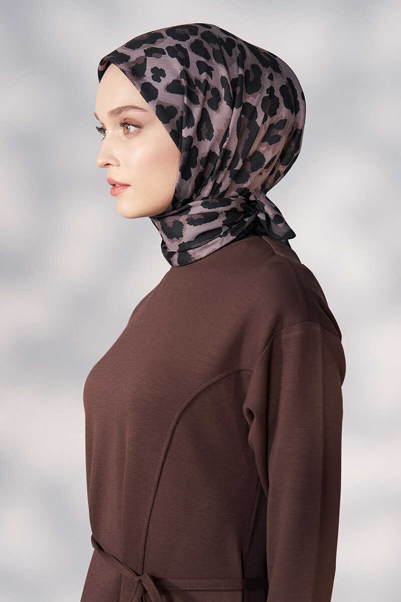 Daisy Leopar Desen Eşarp - Kahverengi