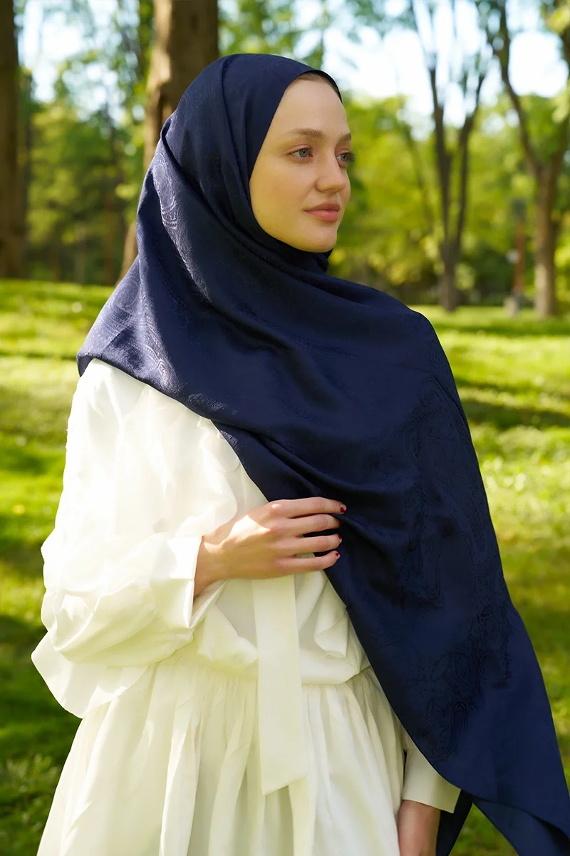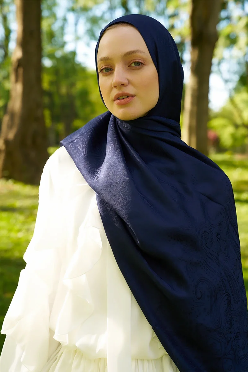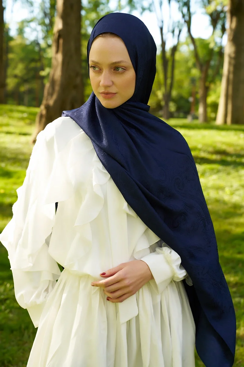 Elegance Lace Desen Jakar Şal - Lacivert