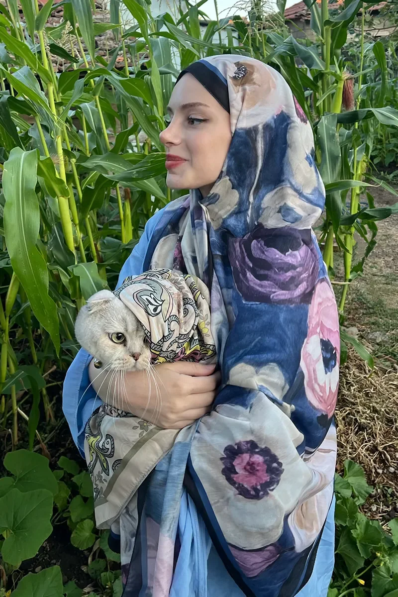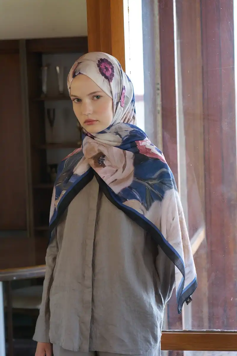 Endless Bloom Desen Şal - Lacivert