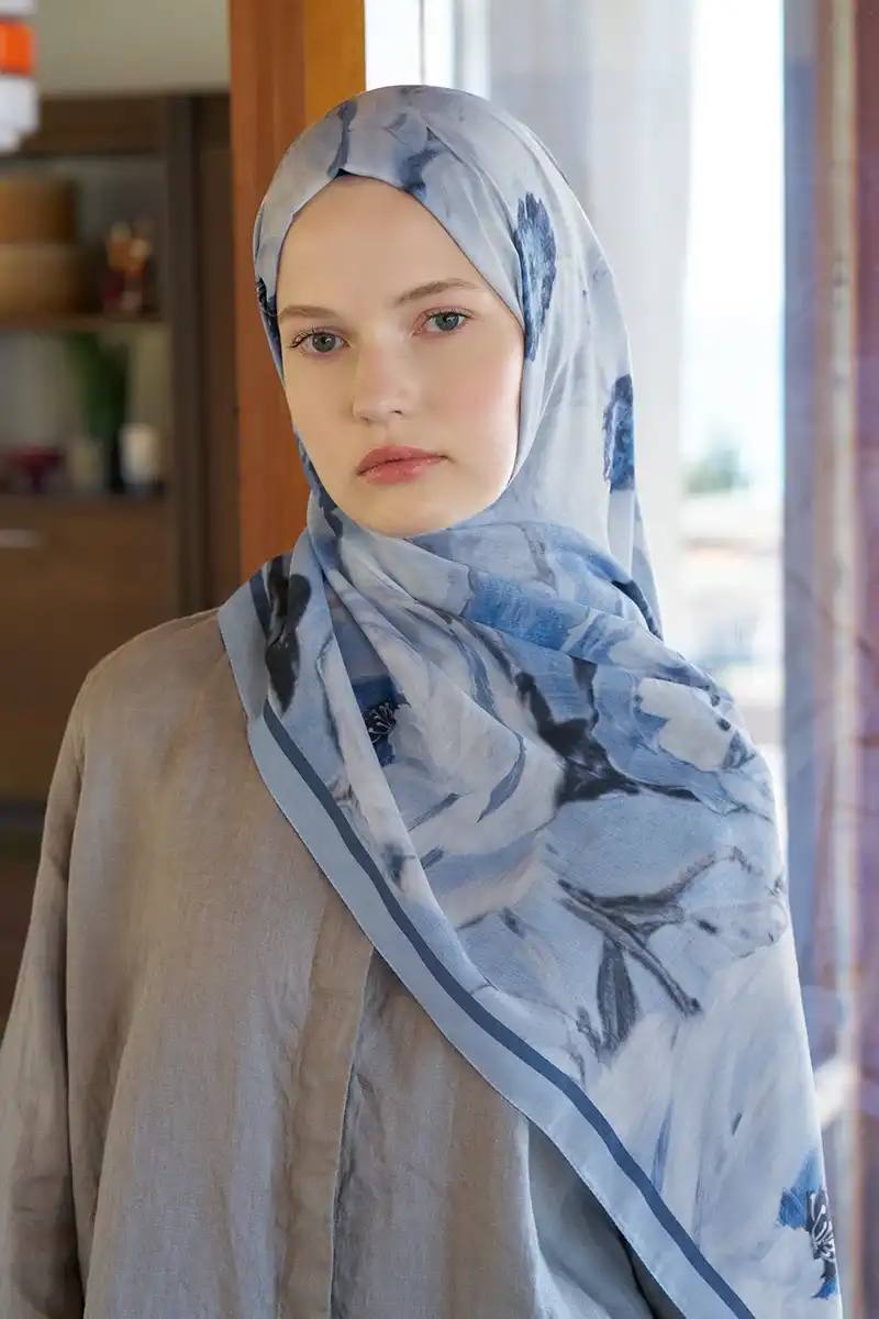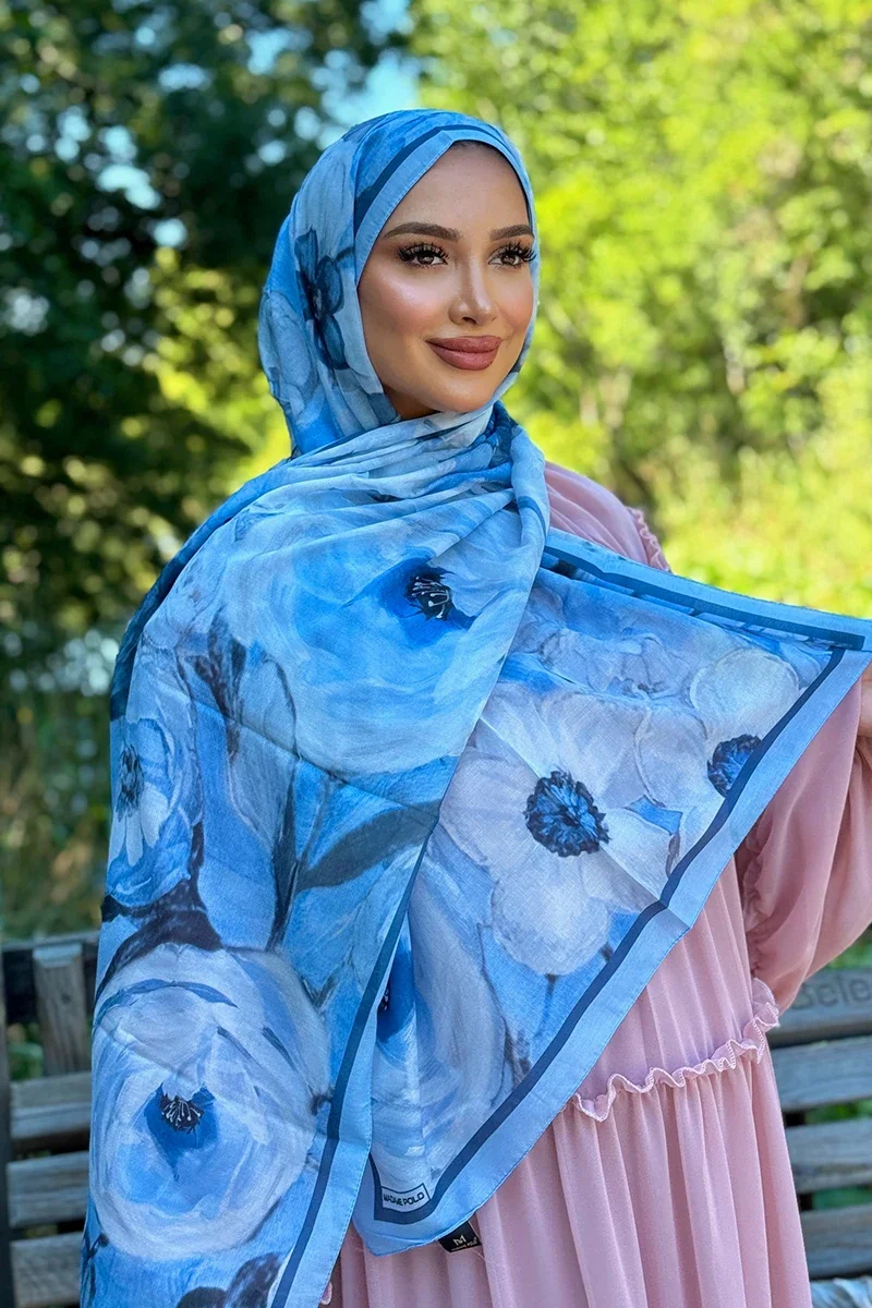 Kübra KOÇ Endless Bloom Desen Şal - Mavi