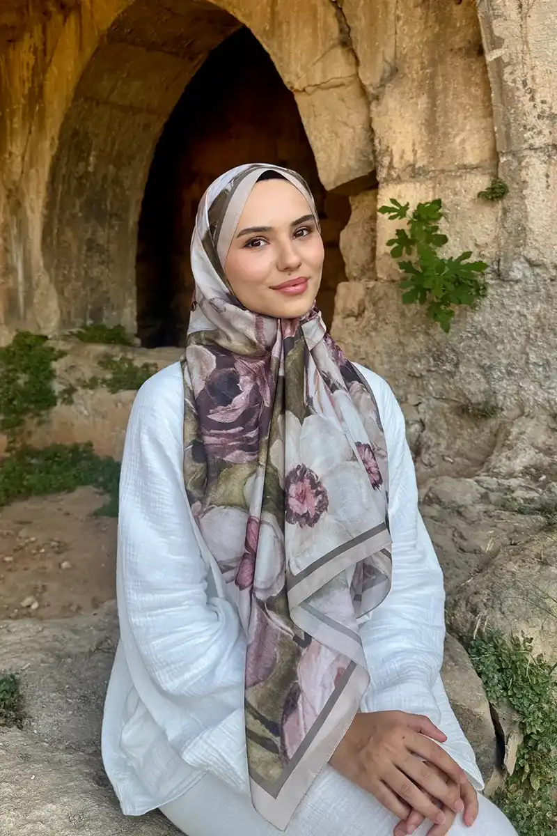 Endless Bloom Desen Şal - Vizon