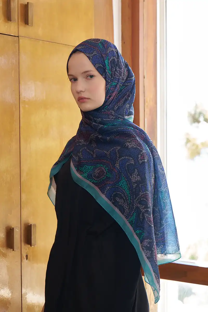 Endless Brise Desen Şal - Gece Mavisi