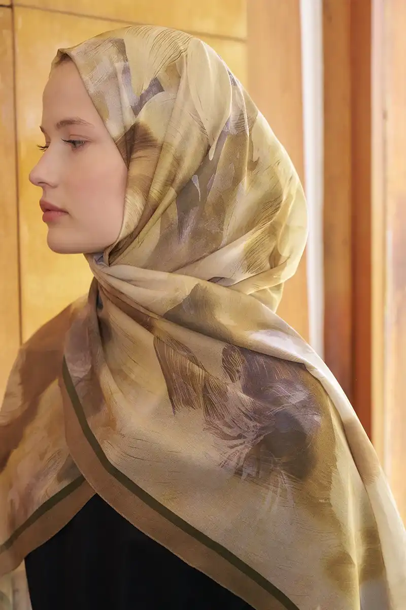 Fransız İpeği Ahenk Desen Şal - Hardal