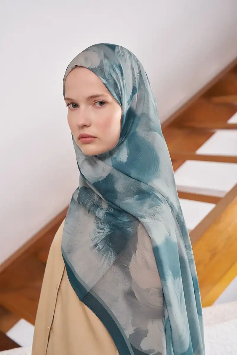 Fransız İpeği Ahenk Desen Şal - Petrol