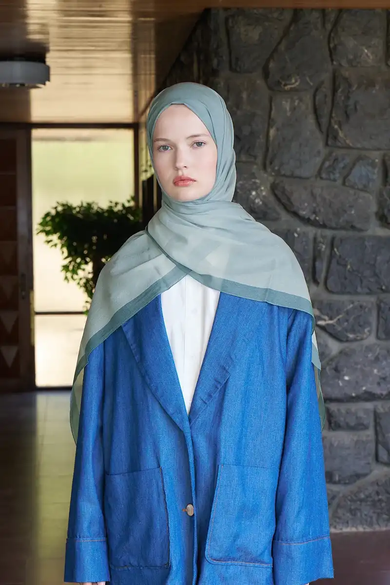 Fransız İpeği Degrade Desen Şal - Mint