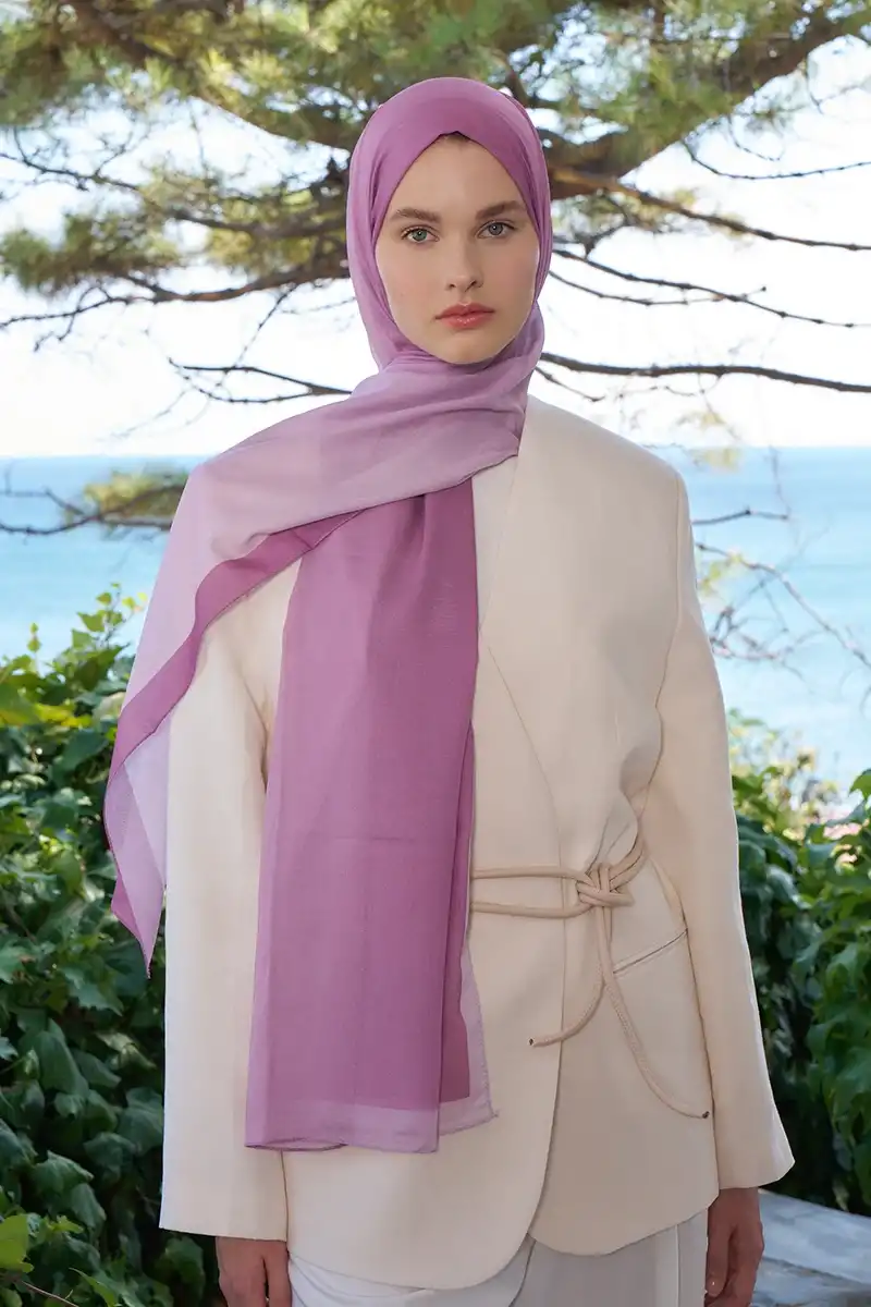 Tuğba BAĞ Fransız İpeği Degrade Desen Şal - Pembe