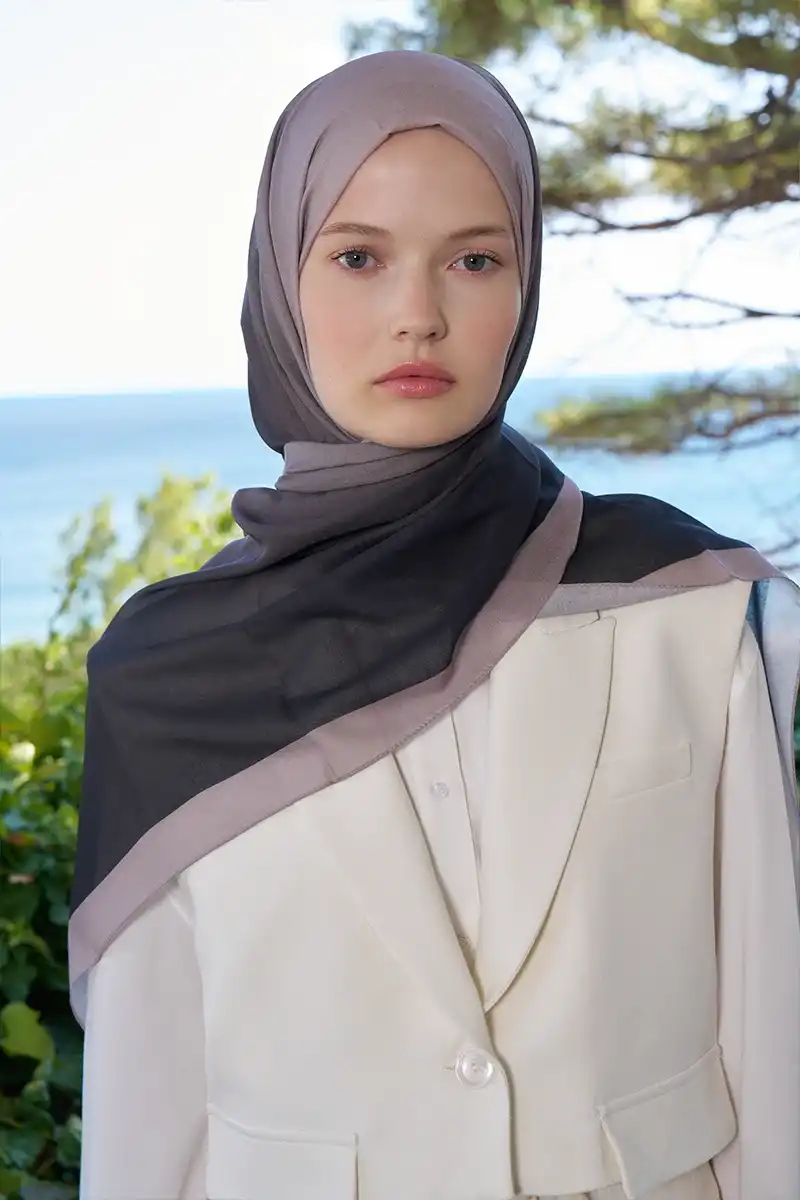 Fransız İpeği Degrade Desen Şal - Siyah / Vizon