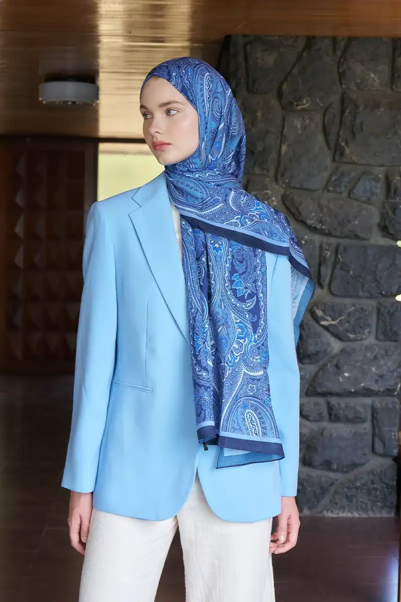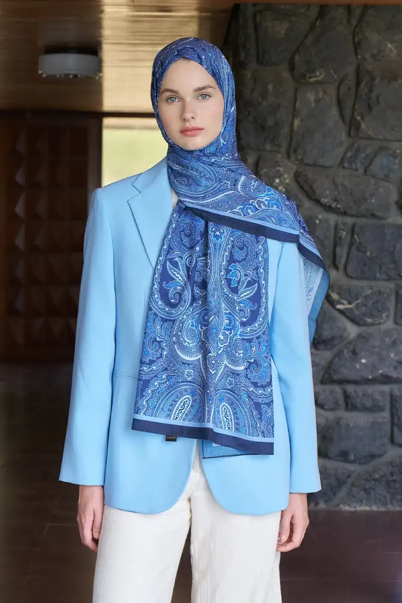 Beyza HURİ Fransız İpeği Saray Desen Şal - Lacivert