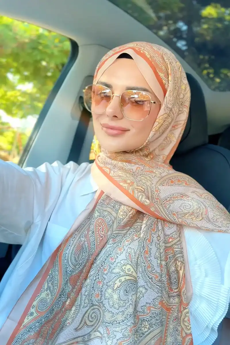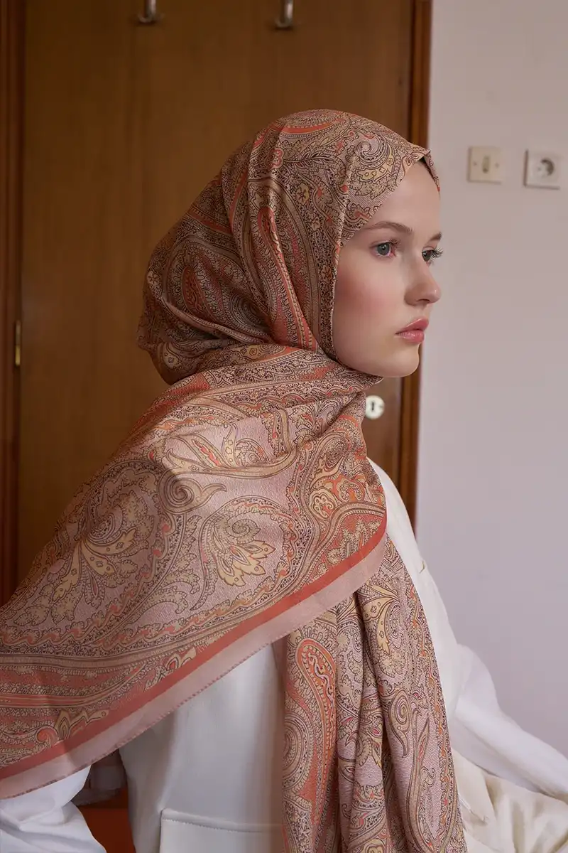 Tuğba BAĞ Fransız İpeği Saray Desen Şal - Turuncu