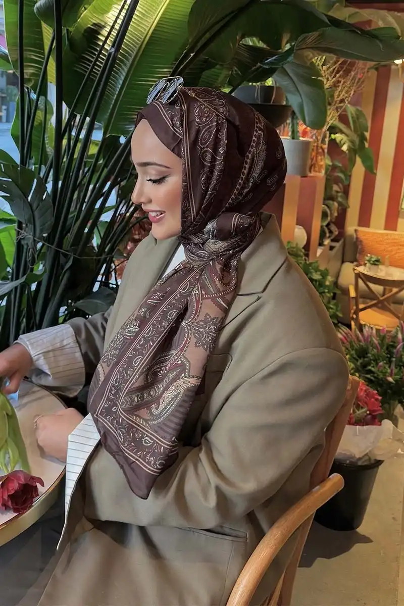 Kardelen Biçici Historical Dionessa Desen Şal - Kahverengi