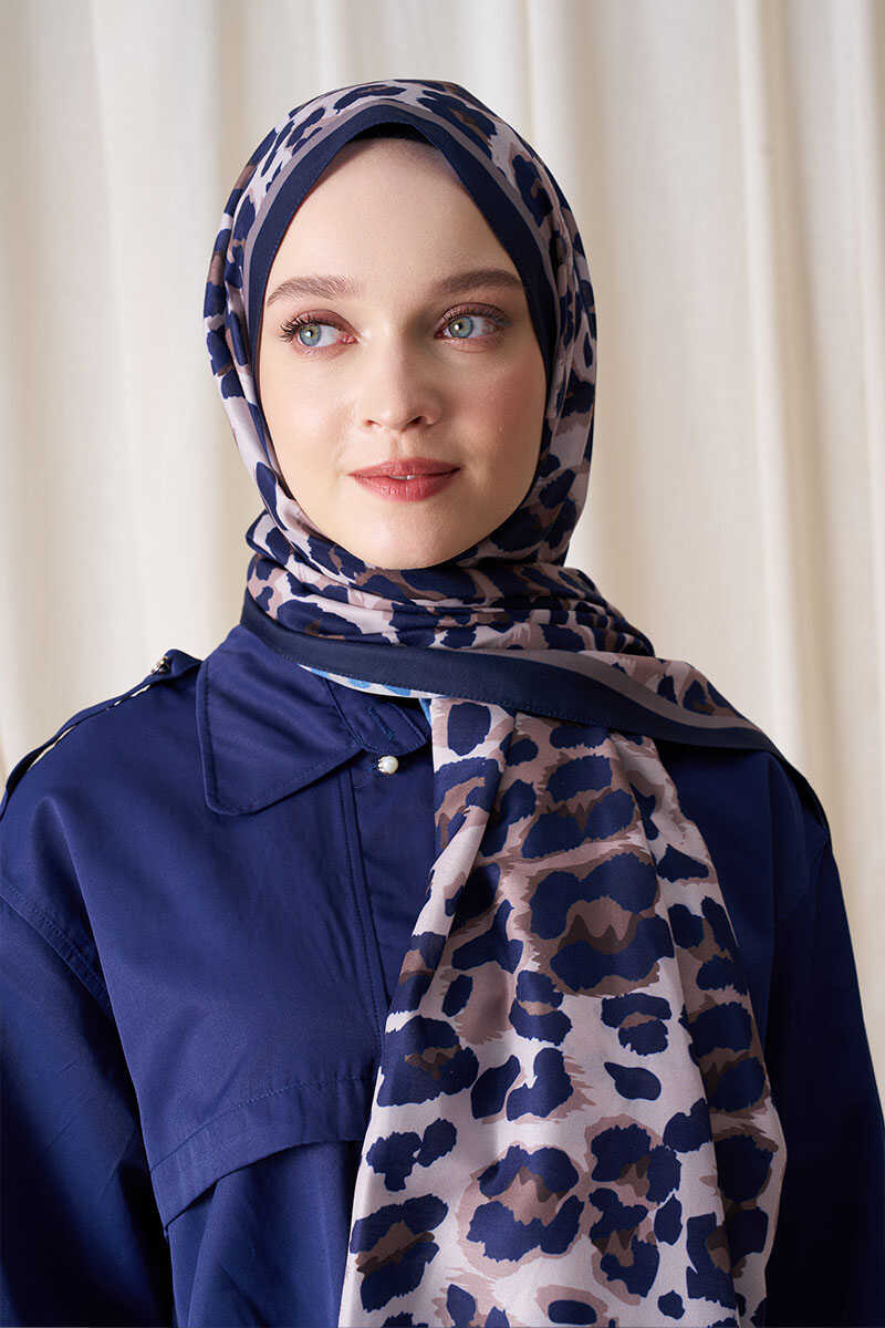 Ahsen Alemdar Historical Leopar Desen Şal - Lacivert