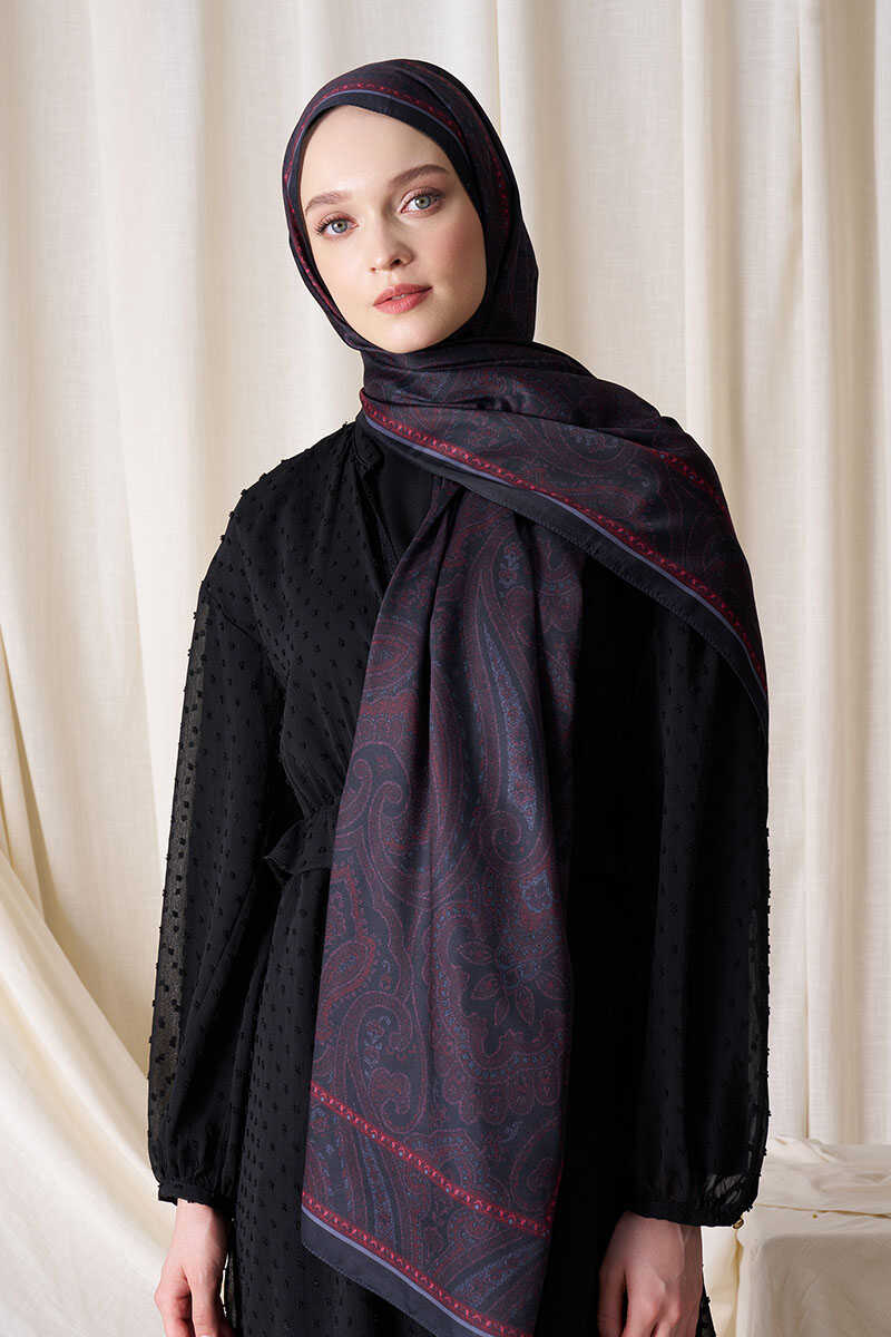 Historical Victorian Desen Şal - Bordo / Siyah