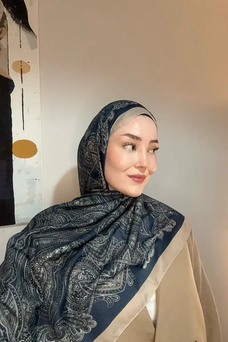 Hyper Retro Desen Şal - Lacivert/Vizon