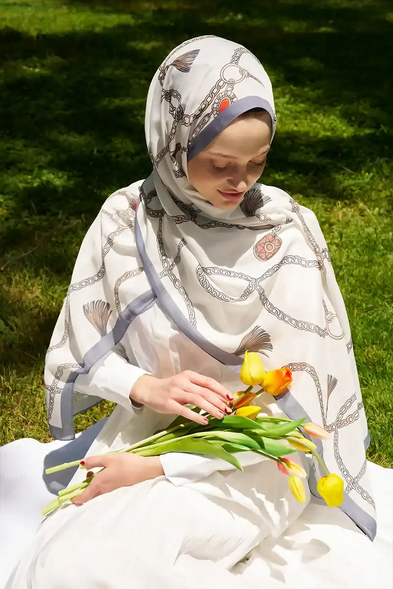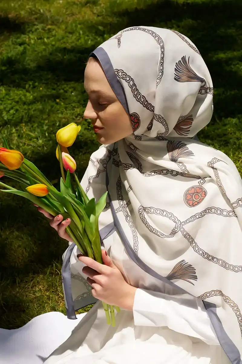 Hyper Zincir Desen Şal - Kırık Beyaz