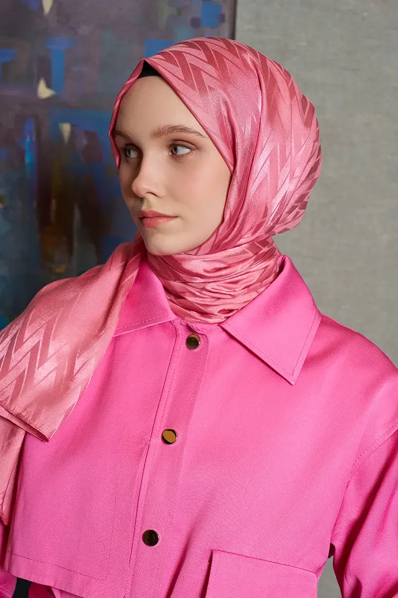 İpeksi Jakar İtalyan Şal Chevron Desen - Pembe