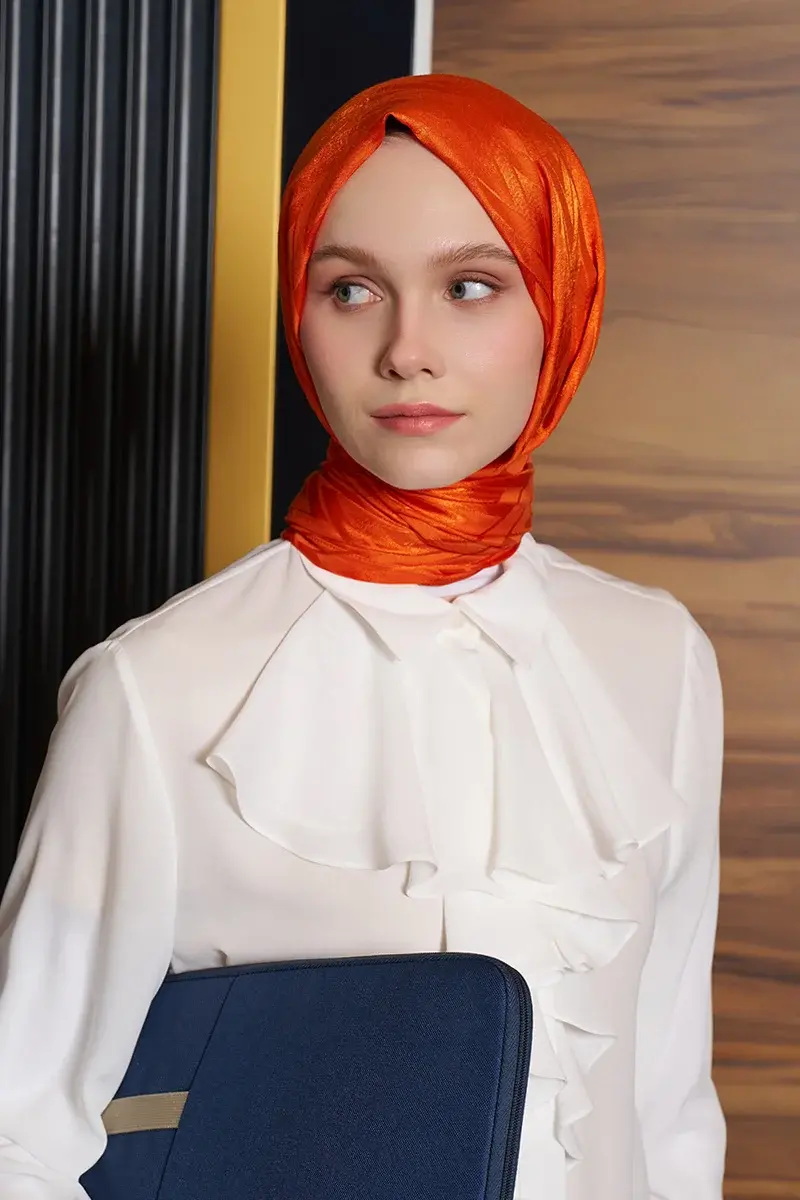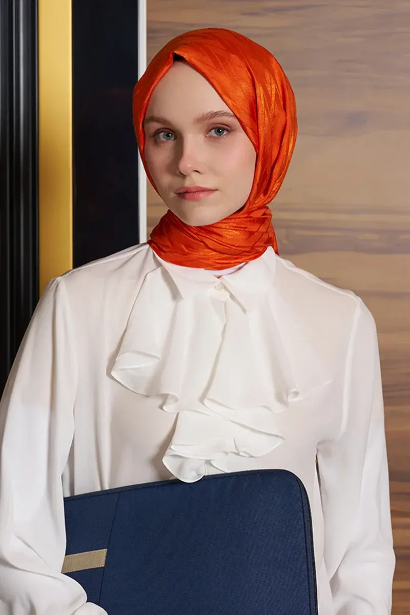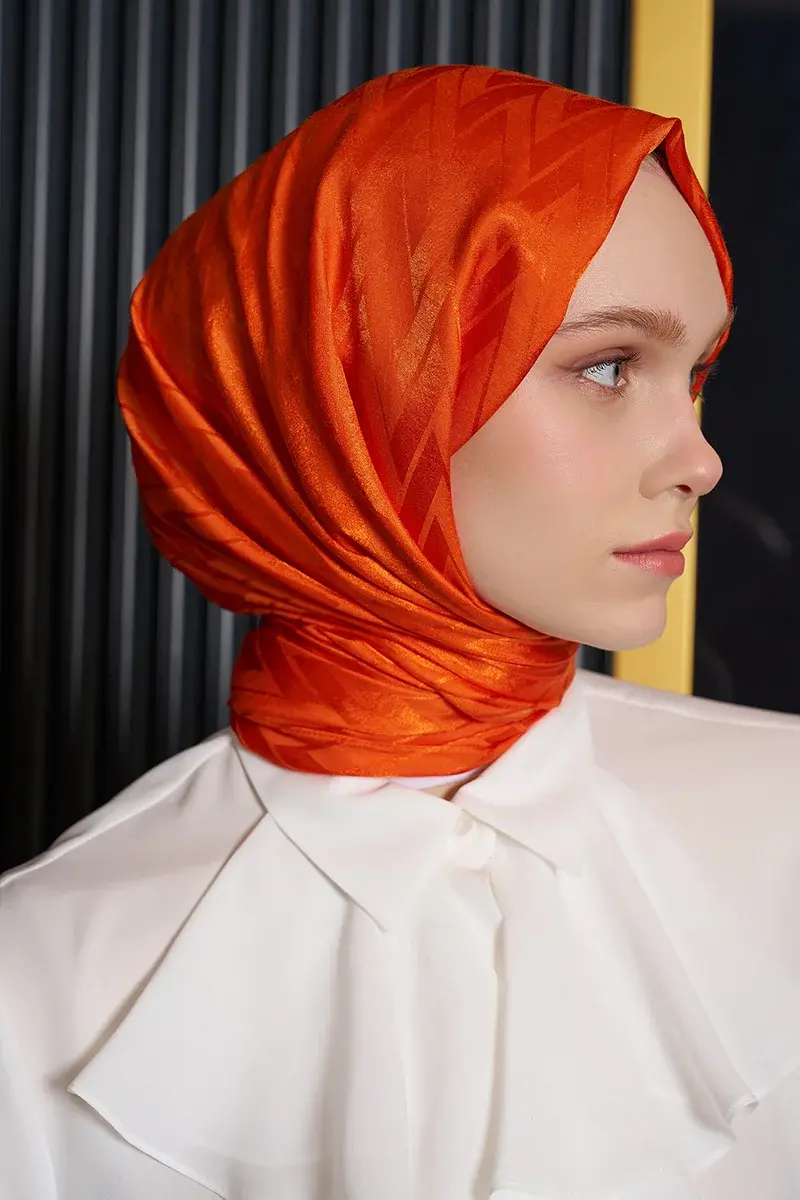 İpeksi Jakar İtalyan Şal Chevron Desen - Turuncu
