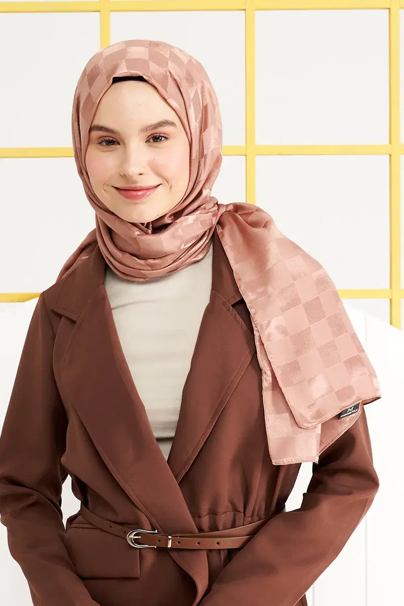 İpeksi Jakar İtalyan Şal Dama Desen - Bronz