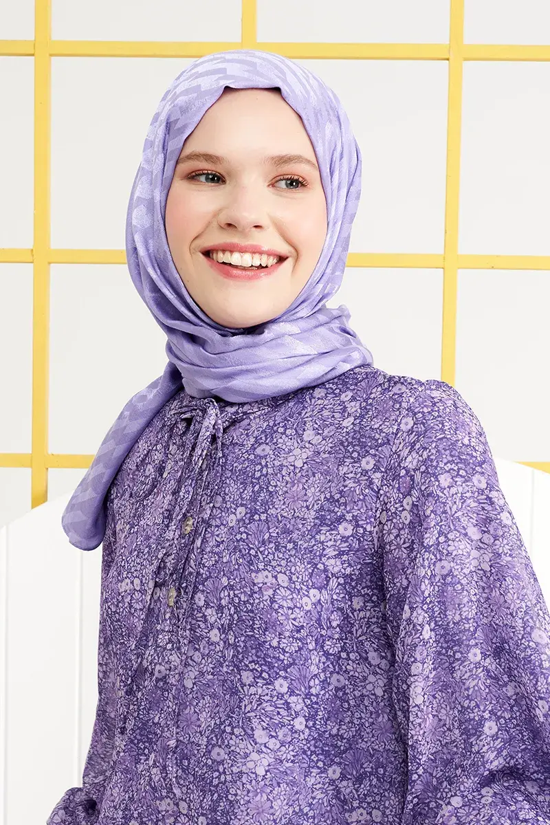 İpeksi Jakar İtalyan Şal Origami Desen - Violet