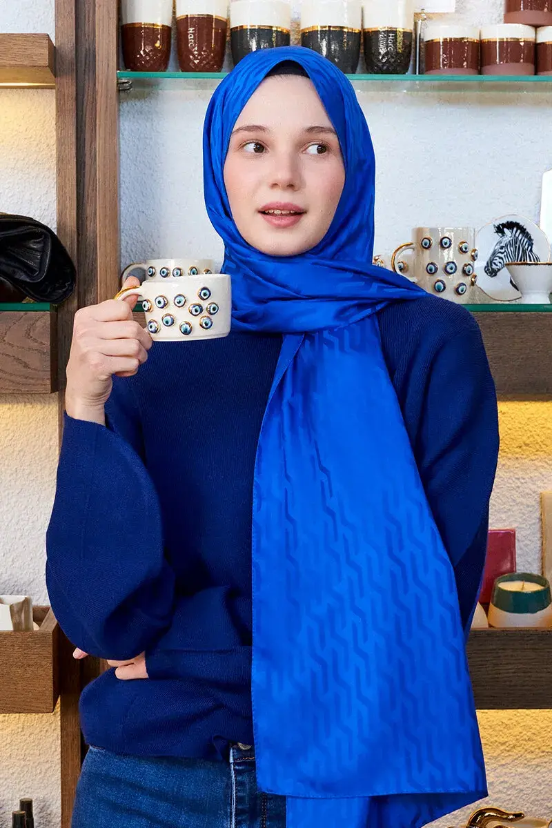İlayda Toraman İpeksi Jakar Lisa Şal Fuzz Desen - Saks Mavi