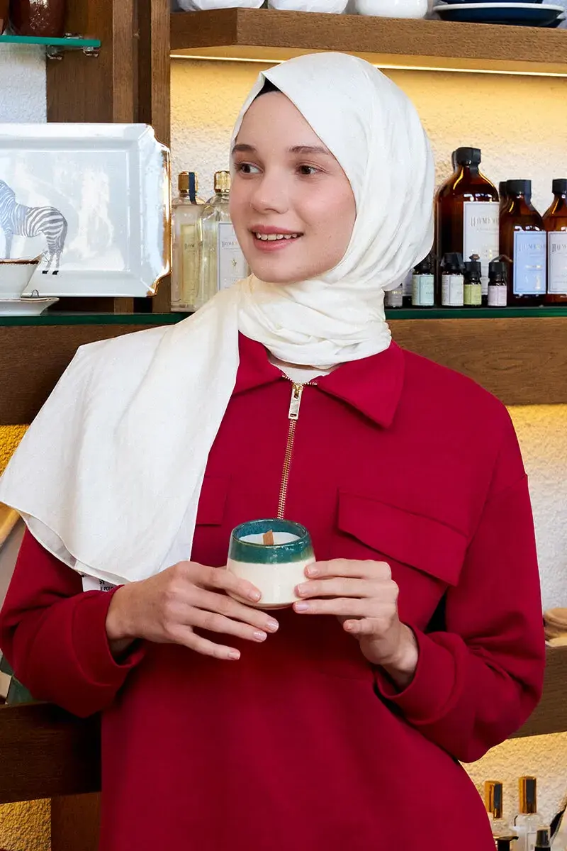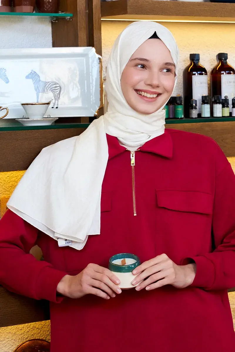 İpeksi Jakar Lisa Şal Zikzak Desen - Kırık Beyaz