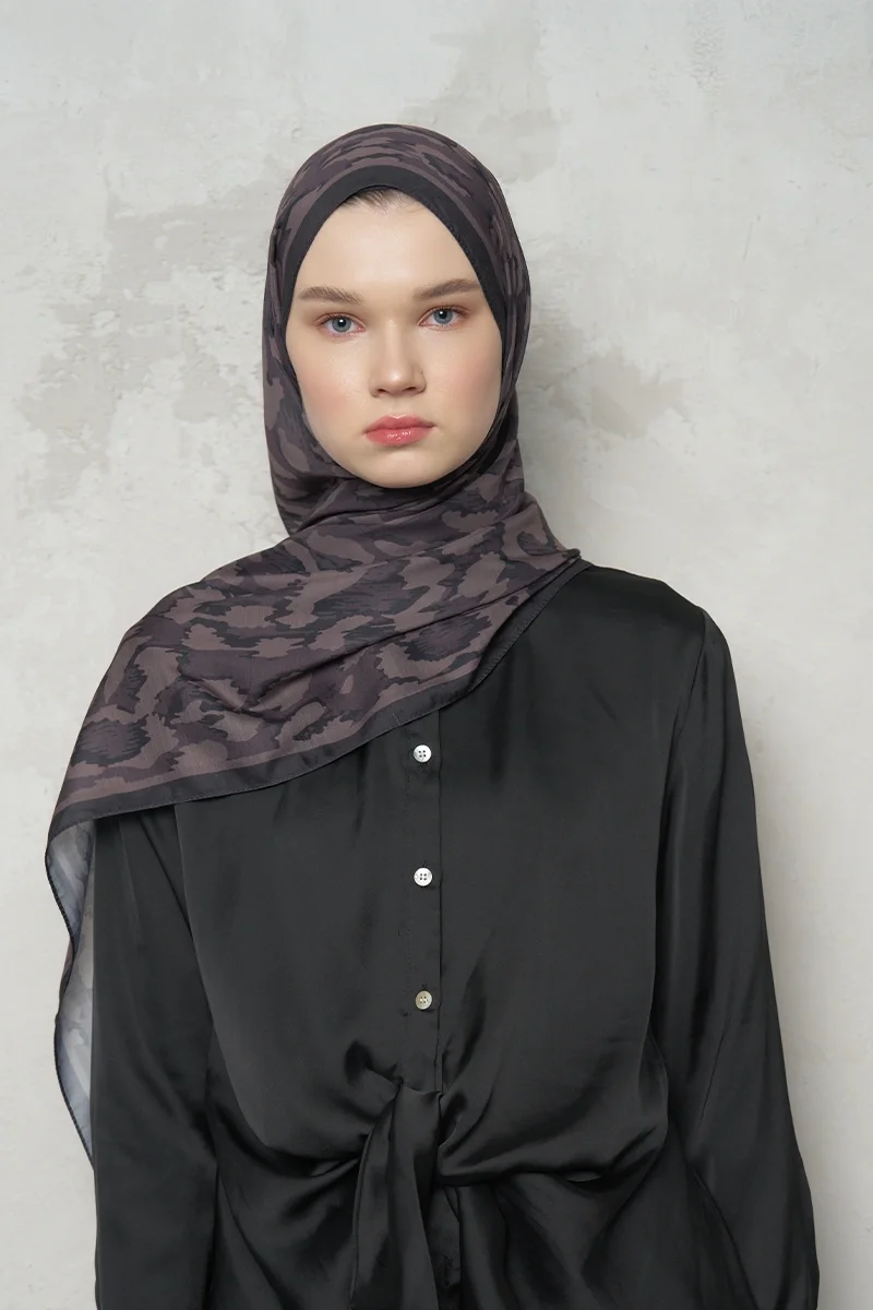 Leopar Desenli Pamuk Dokulu Şal - Acı Kahve