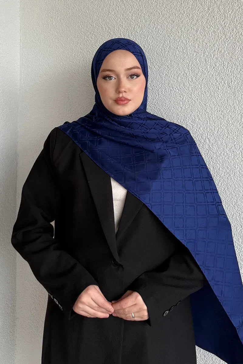 Naiya Jakar Şal Frame Desen - Gece Mavisi