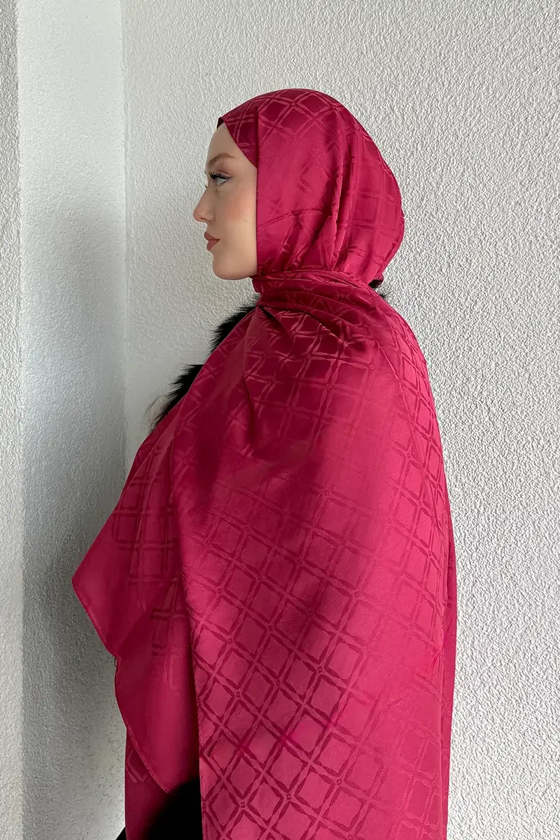 Naiya Jakar Şal Frame Desen - Koyu Pembe
