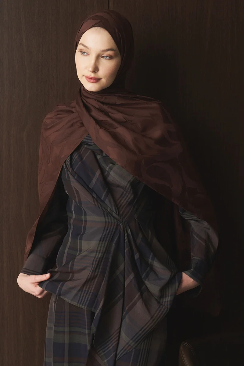 Naiya Jakar Şal Wave Desen - Acı Kahve