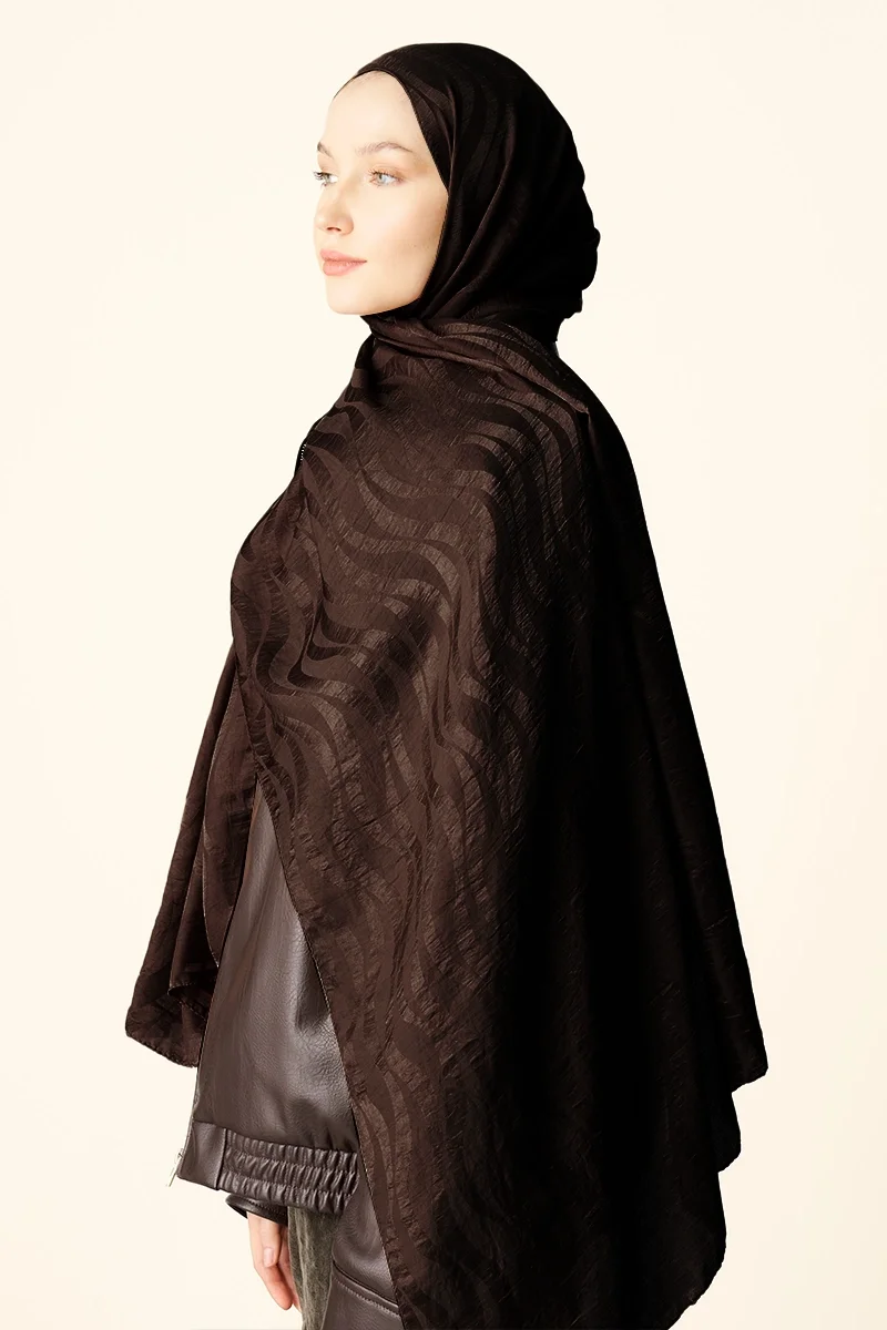 Premium Jakar Şal Dalga Desen - Kahverengi