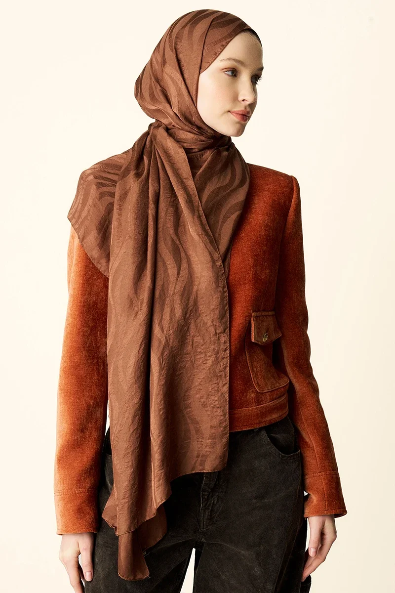 Premium Jakar Şal Dalga Desen - Kızıl Kahve