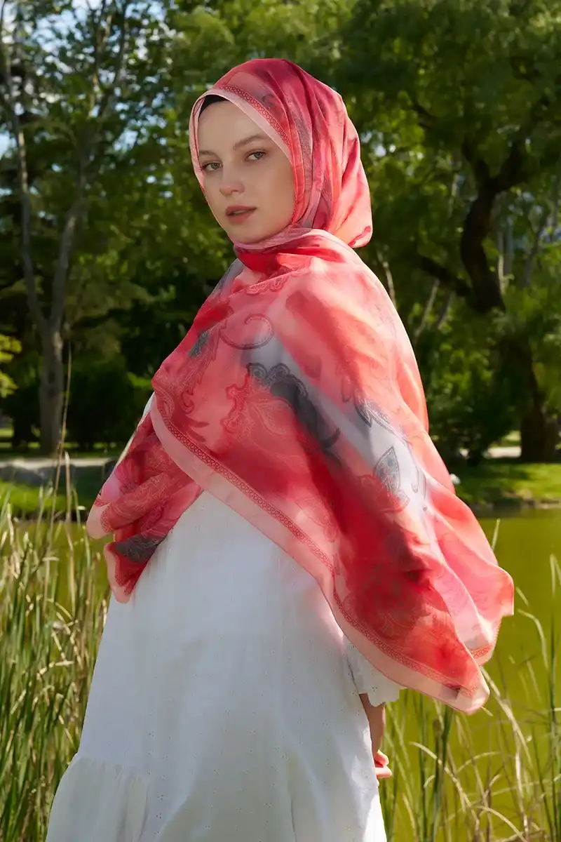 Prestige Vintage Desen Şal - Mercan