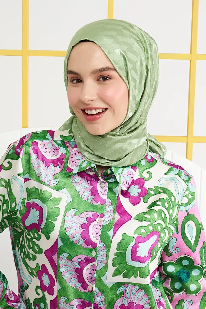 Silky Jacquard Italian Hijab Origami Pattern - Sage