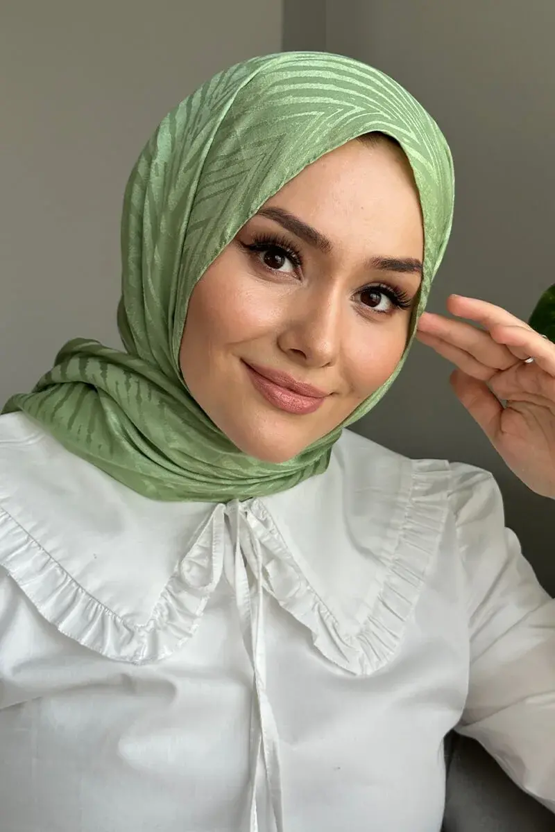 Silky Jacquard Italian Hijab Zigzag Pattern - Sage