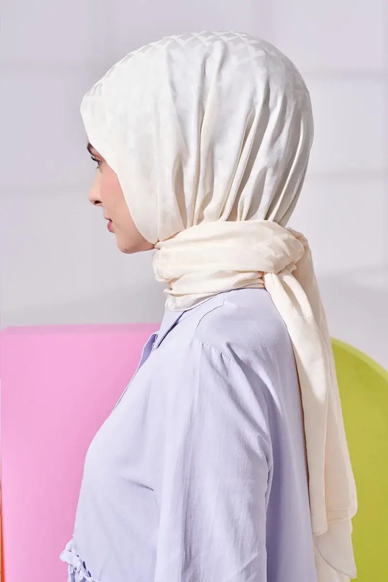 Silky Jacquard Lara Hijab Geometric Pattern - Cream